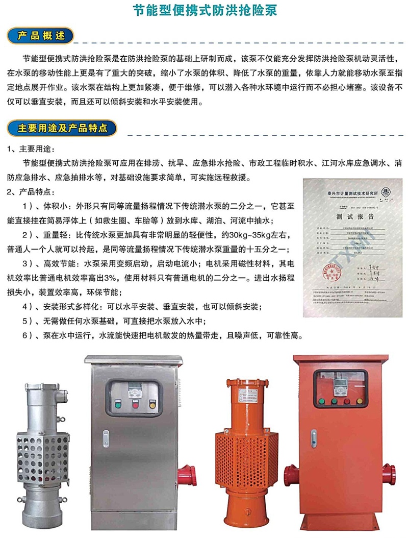 節(jié)能型便攜式防洪搶險泵
